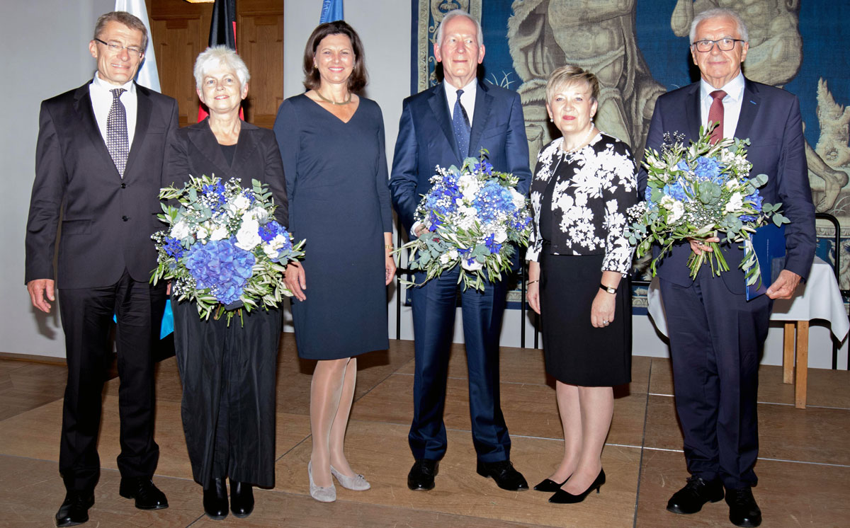 Verleihung der Klenze-Medaille 2018 - v.l.n.r.: Amtschef des Bayerischen Staatsministeriums für Wohnen, Bau und Verkehr, Ministerialdirektor Helmut Schütz, Professorin Sophie Wolfrum, Bauministerin Ilse Aigner, Professor Dr.-Ing. Gunter Henn , Ministerialdirektorin Brigitte Brunner, Dipl.-Ing. Victor Schmitt
