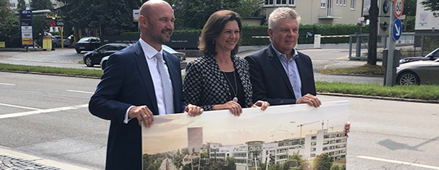 Bayerns Verkehrsministerin Ilse Aigner und Oberbürgermeister Dieter Reiter stellen gemeinsam mit Dr. Jürgen Büllesbach, Vorstandsmitglied der Schörghuber Unternehmensgruppe, die Idee für eine Seilbahn für München vor.