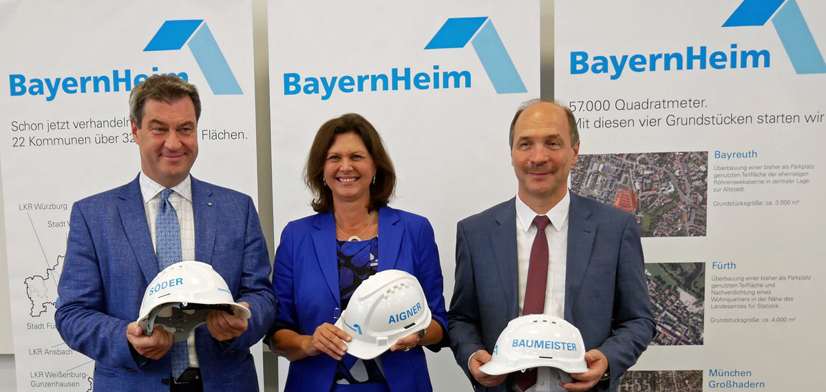 Präsentation der neuen Wohnungsbaugesellschaft für Bayern: Ministerpräsident Dr. Markus Söder, Bauministerin Ilse Aigner, neuer Geschäftsführer der BayernHeim Peter Baumeister