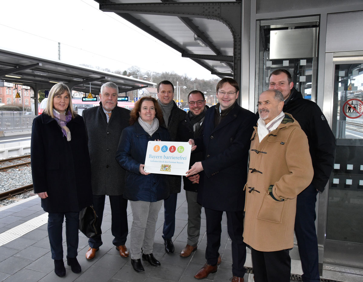 Übergabe des Fördersignets "Bayern barrierefrei" am Bahnhof Coburg