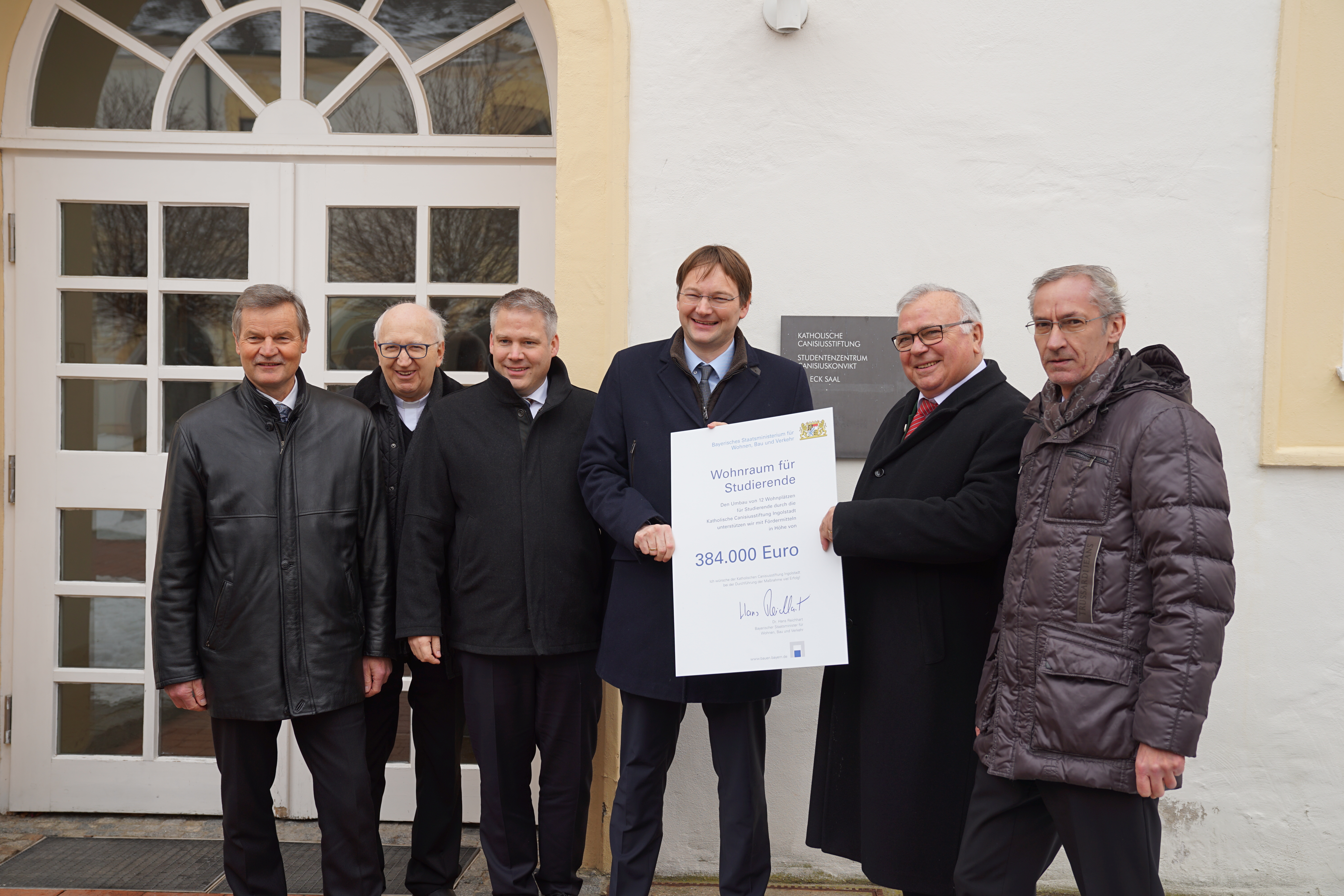 Der Freistaat Bayern unterstützt die katholische Canisiusstiftung Ingolstadt beim Umbau des alten Konvikts. Das Gebäude soll umgebaut werden, damit zwölf Wohnheimplätze für Studierende erhalten werden können. „Studieren in Bayern ist beliebt, allein in den vergangenen zehn Jahren ist die Zahl um mehr als 50 Prozent gestiegen. Anlass genug, die Studierenden bei der Wohnungssuche auf einem angespannten Mietmarkt zu unterstützen“, so Bayerns Bauminister Dr. Hans Reichhart heute anlässlich der Förderbescheidübergabe an die Stiftung.