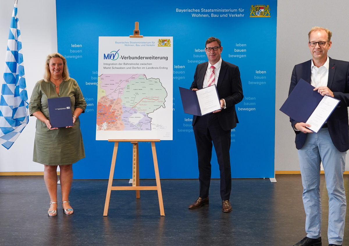 „Mit der Verbundintegration der Schienenstrecke zwischen Markt Schwaben und Dorfen wird eine bislang bestehende Lücke im MVV-Tarifraum geschlossen und das ÖPNV-Angebot im östlichen Landkreis Erding gewinnt noch einmal deutlich an Attraktivität“, so MVV-Geschäftsführer Dr. Bernd Rosenbusch. „Wir freuen uns, dass Freistaat und Landkreis diesen Schritt gemeinsam ermöglichen. Pendlerinnen und Pendler aus Dorfen und Umgebung profitieren so ab Dezember 2024 auch auf der Schienenstrecke in Richtung München vom Verbundgedanken: 1 Netz. 1 Fahrplan. 1 Ticket.“