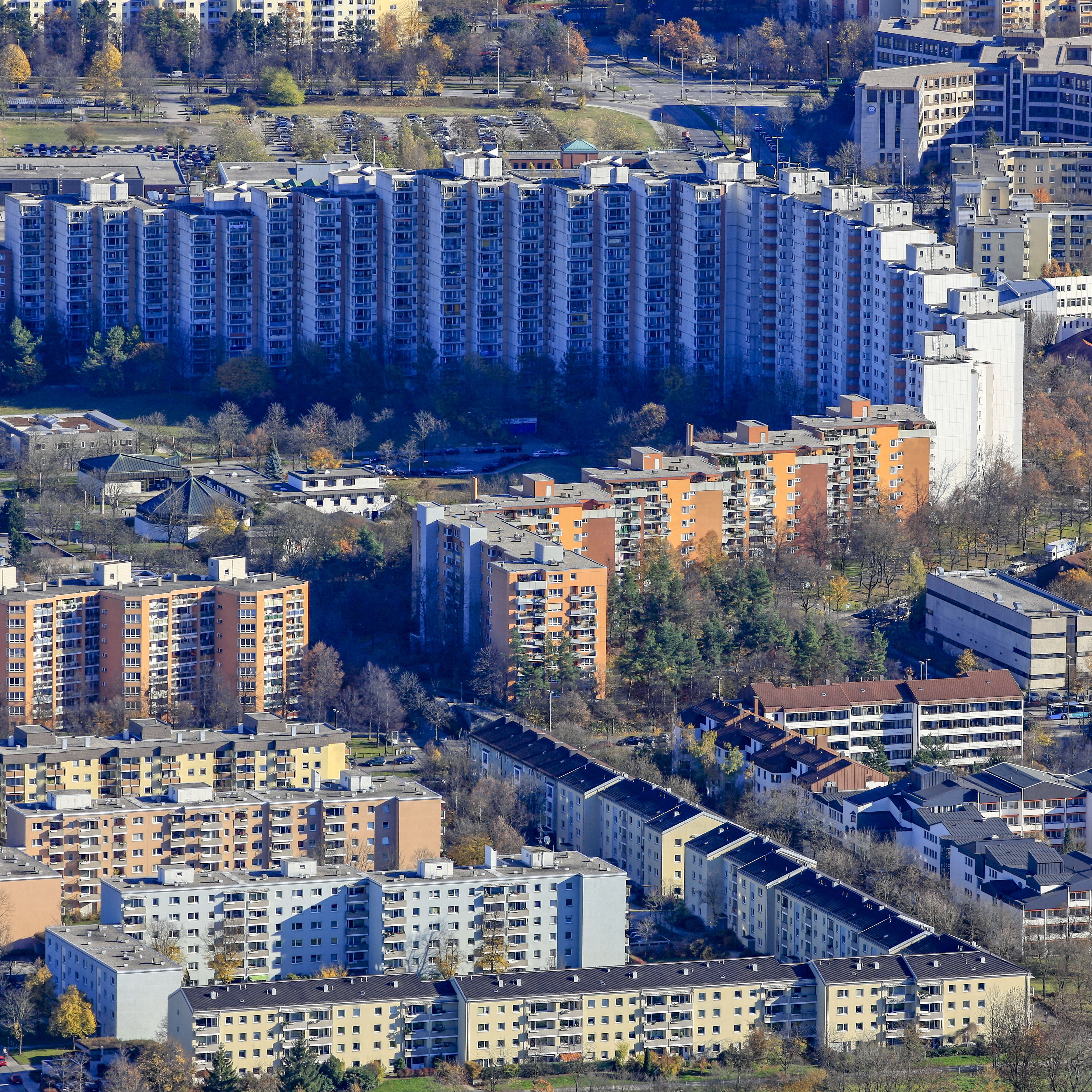 Luftaufnahme des Münchner Stadtviertels Neuperlach