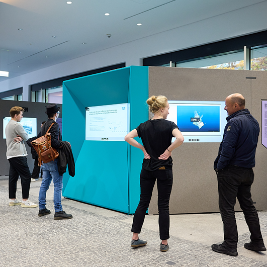 Am gleichen Abend eröffnen wir die thematisch passende Begleitausstellung, die Sie noch zwei weitere Wochen im Foyer des Bau- und Verkehrsministeriums besichtigen können. Freuen Sie sich auf drei Ausstellungsstationen zur Digitalisierung im Straßenverkehr, im Schienenverkehr und im ÖPNV. Anhand aktueller Best-Practice und Pilotprojekte zeigen wir u.a., was durch digitale Verkehrsmanagement- und Verkehrsinformationssysteme sowie KI-gestützte Anwendungen bereits möglich ist. Dabei wir deutlich, was die unterschiedlichen Verkehrsbereiche eint: Die gemeinsame und wichtigste Grundlage für den Fortschritt sind Mobilitätsdaten.