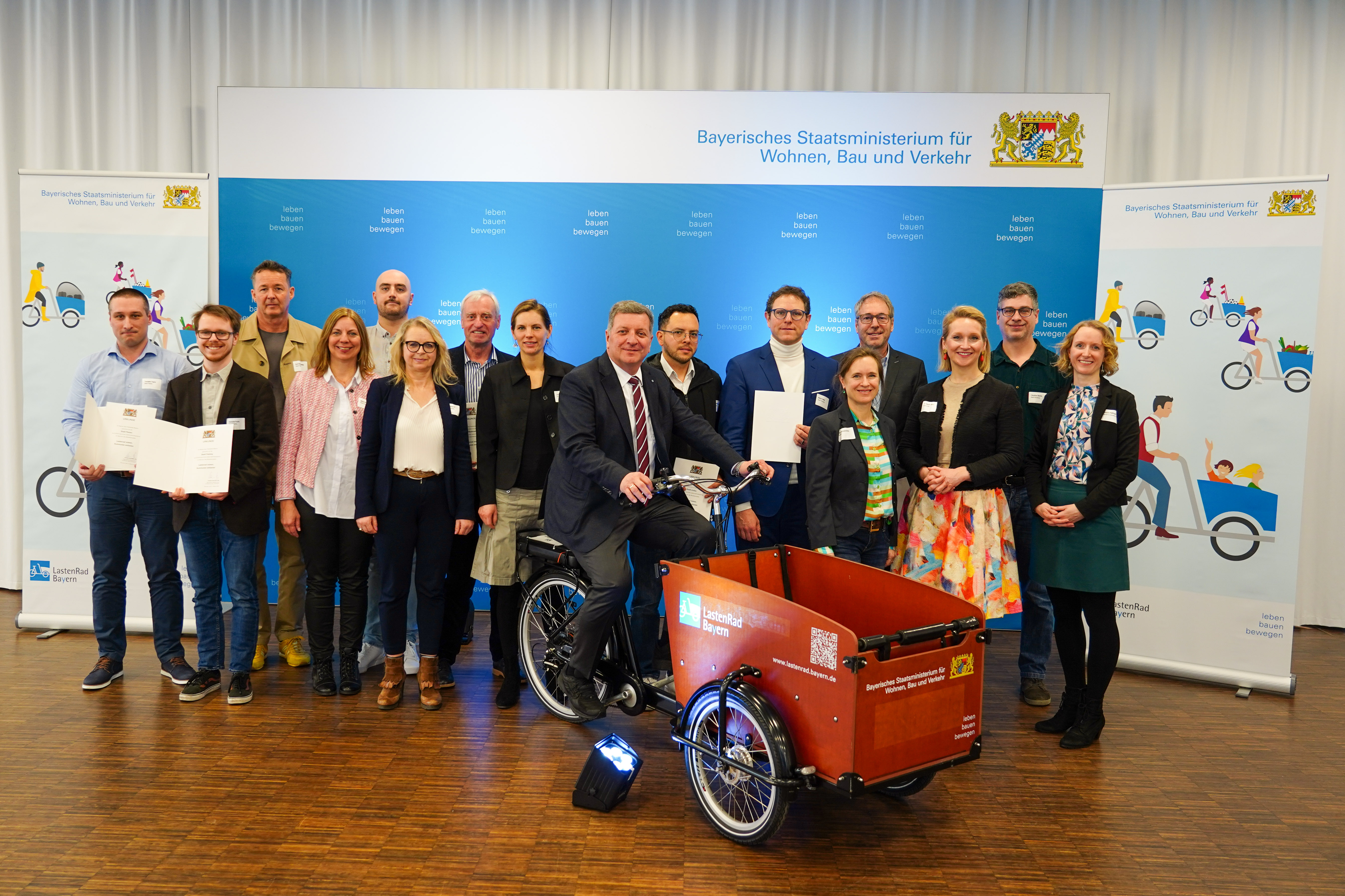Cadolzburg in Mittelfranken, Freising in Oberbayern, Lechbruck am See und Lindau am Bodensee in Schwaben, Marktredwitz in Oberfranken, Passau in Niederbayern und Würzburg in Unterfranken haben sich an dem Modellprojekt beteiligt. Der Markt Postbauer-Heng in der Oberpfalz hat kein Mietsystem eingerichtet, sich aber im Namen aller Modellkommunen um die notwendige Buchungsplattform und -App gekümmert. Heute haben Vertreterinnen und Vertreter der Kommunen Urkunden von Verkehrsminister Bernreiter entgegengenommen. „Lastenräder sind in den vergangenen Jahren immer beliebter geworden. Sie eignen sich, um den Einkauf nach Hause zu transportieren, die Kinder abzuholen oder für Ausflüge“, erklärte Bernreiter in seinem Grußwort. „Ein vollautomatisches Lastenrad-System ist für die Bürgerinnen und Bürger sehr komfortabel: Sie sparen sich Anschaffungskosten und Platz, gleichzeitig sind die Räder einfach zu mieten, jederzeit und kurzfristig verfügbar. Das wussten auch die Nutzerinnen und Nutzer in unseren Pilotkommunen zu schätzen und haben die Lastenräder eifrig genutzt.“