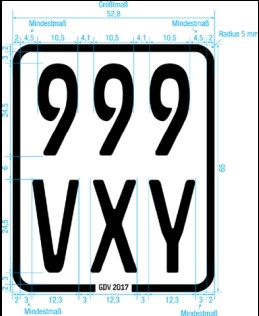 • mit einer Fahrzeug-Identifizierungsnummer sowie einem Fabrikschild mit der Angabe "Elektrokleinstfahrzeug", der bauartbedingten Höchstgeschwindigkeit von max. 20 km/h und der Genehmigungsnummer der Allgemeinen Betriebserlaubnis oder der Einzelbetriebserlaubnis gekennzeichnet ist,